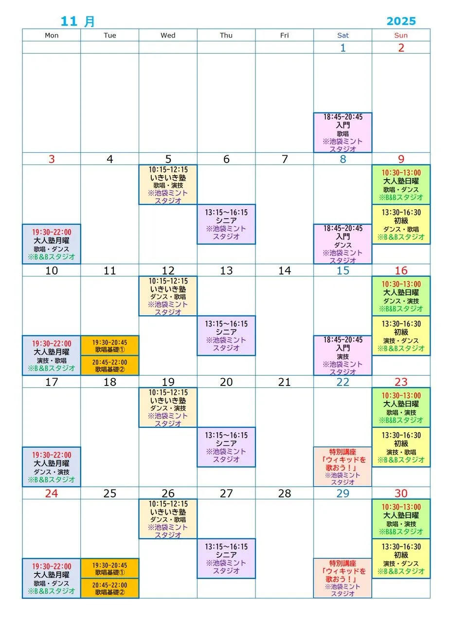 ※大人塾・シニアクラスは、11月からの募集開始となります。 - ★歌唱基礎①(4名限定) 10~3月生徒募集!★