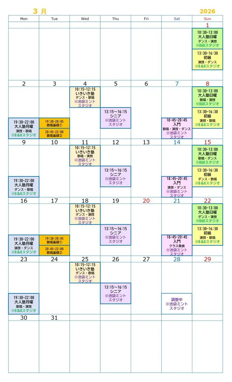 ※入門・初級、大人塾・シニアクラスは、今回の募集はありません。 - ★5名限定!特別講座『ミュージカルボーカル基礎』★
